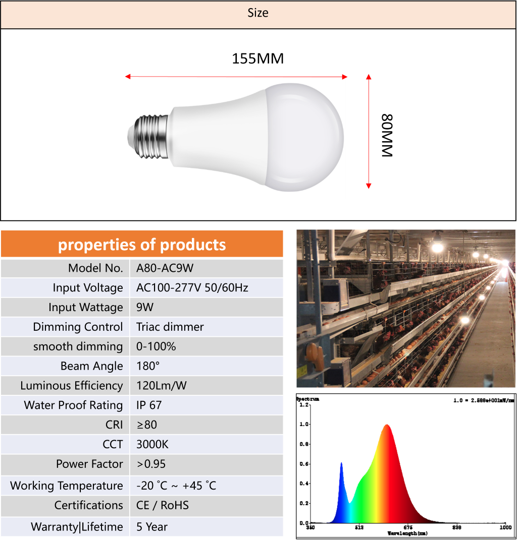 9W,0-100% TriAC Dimming,120Lm/W,IP67