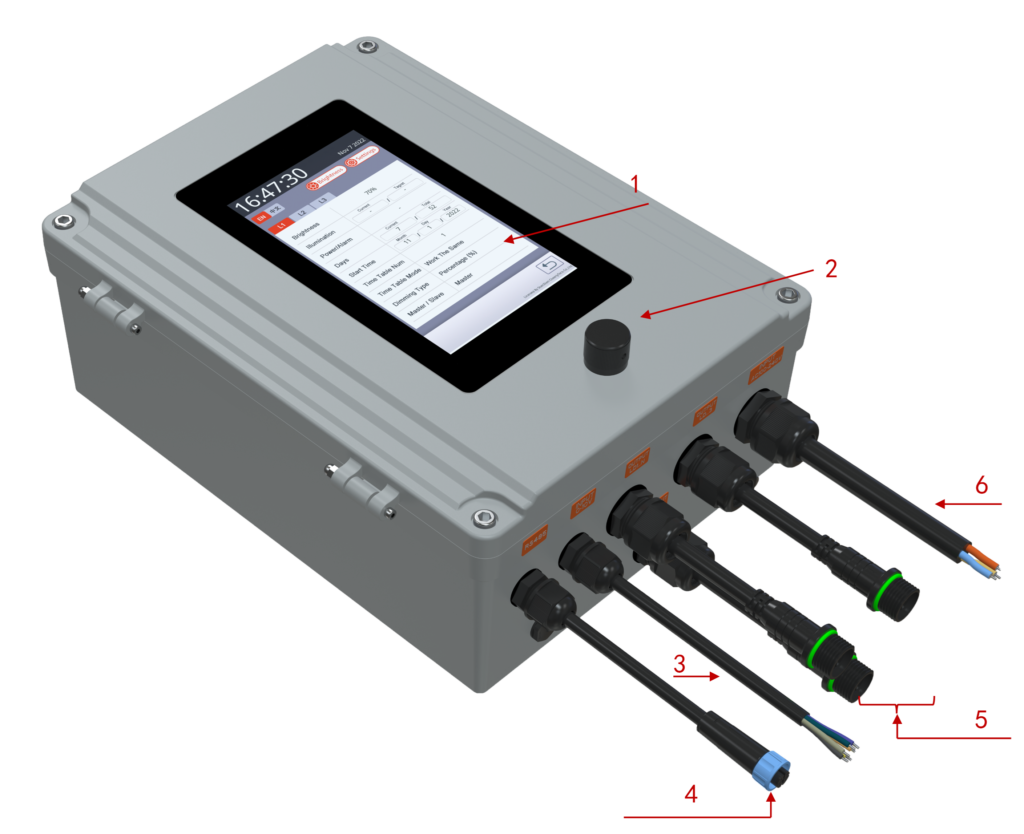 1 | Screen | 600×1024 IPS capacitive touch screen, display the dimming brightness of the dimming controller, working status and parameter configuration. |